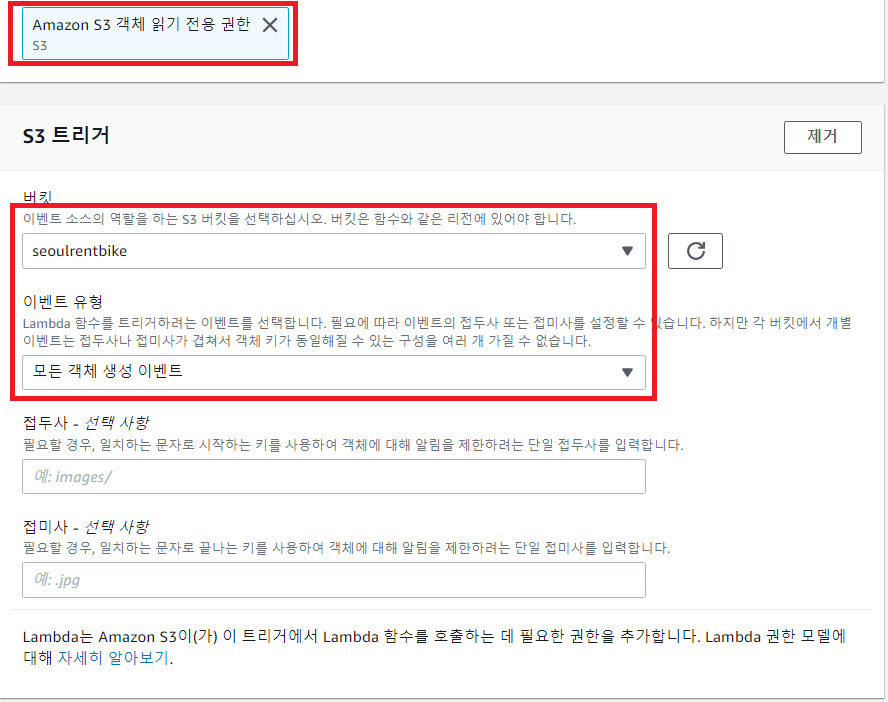 Lambda Function을 S3 Object Upload를 Trigger로 매핑하였다.