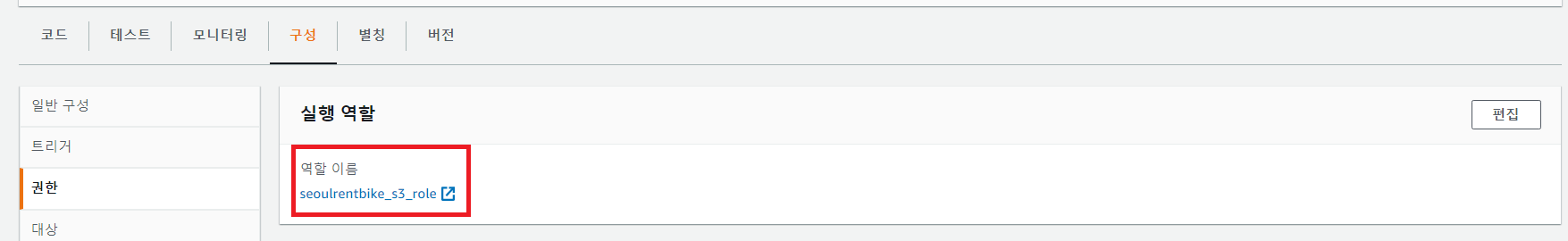 해당 Function에 S3 권한 추가된 것을 확인한다.