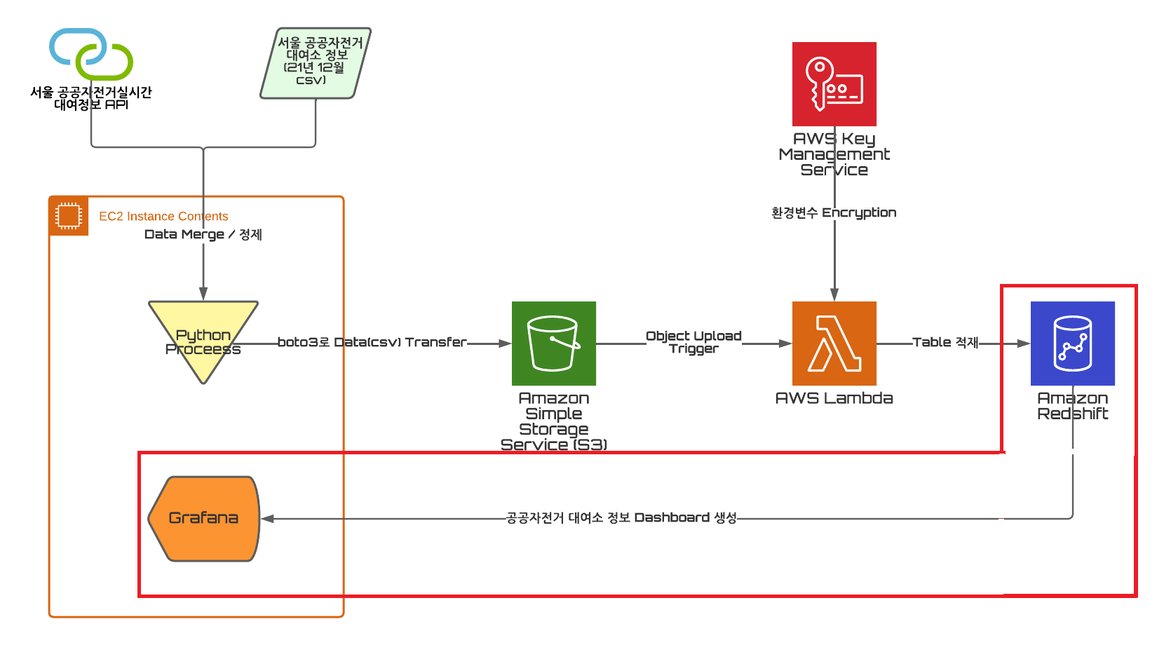 서울시 공공데이터에서 따릉이 대여소 정보를 정제하고 AWS S3에 업로드를 Python Process로 진행했다.