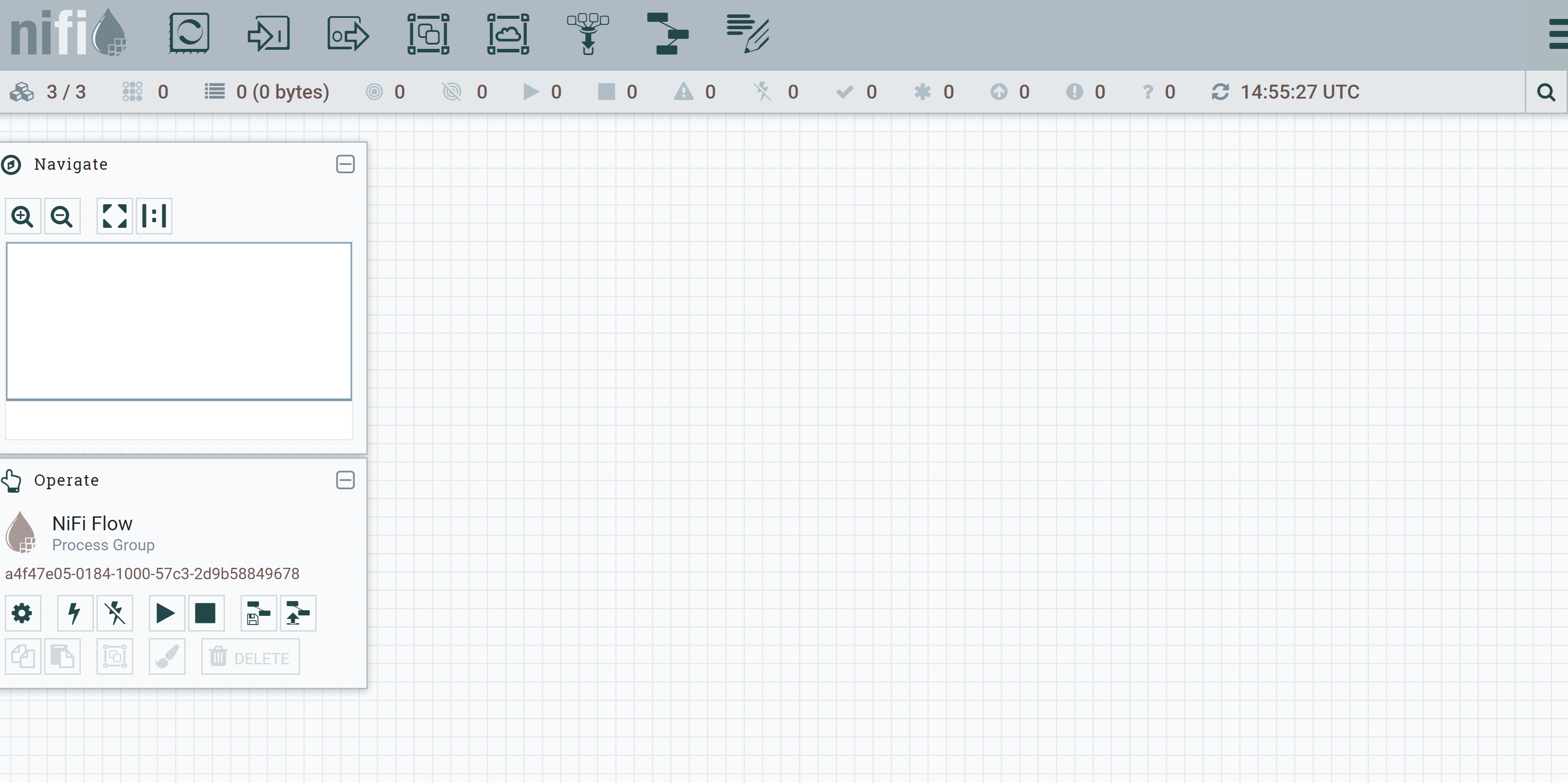 Nifi Cluster Node IP(Public IP) 기준으로 8080 포트로 Nifi Web UI에 들어갈 수 있다.