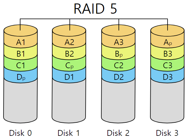 RAID 5는 가장 최우선으로 고려되는 RAID 구성이다.