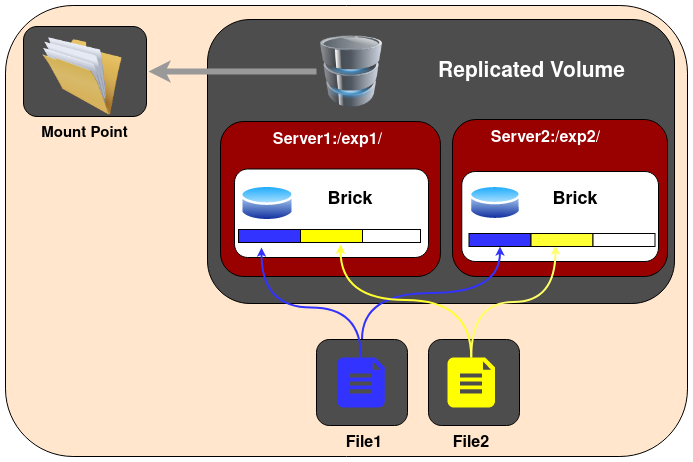 - Replicated Volume -> File이 지정한 Replica 개수에 맞춰 Brick에 복제되어 저장