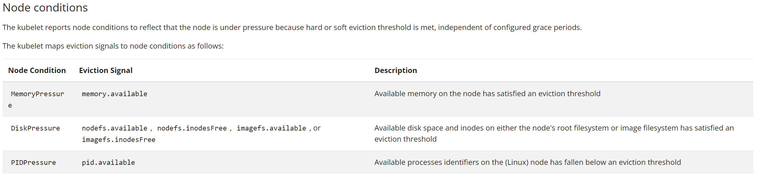 describe command로 Pod의 상태를 보면 DiskPressure로 인해서 Pod이 제대로 실행되지 않았습니다.