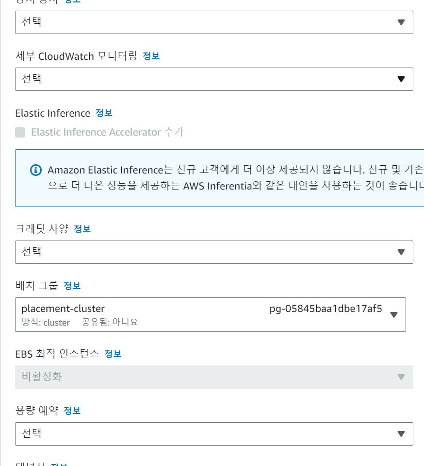 EC2 생성 시 [고급 세부 정보]에서 배치 그룹을 선택할 수 있습니다.