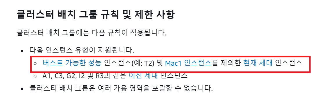 다만 여기서 Cluster Placement Group을 지원하는 인스턴스 타입이 따로 있습니다.