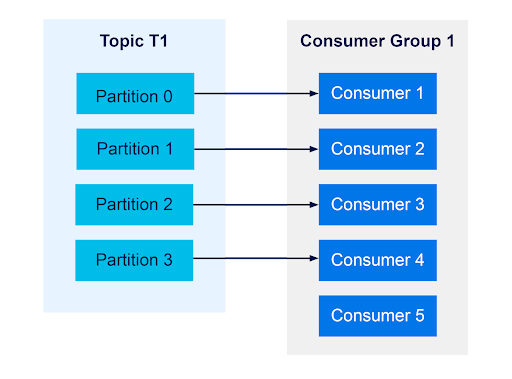 만약 Consumer Group의 Consumer의 수가 Partition 수가 많으면 노는 Consumer가 생기게 됩니다.