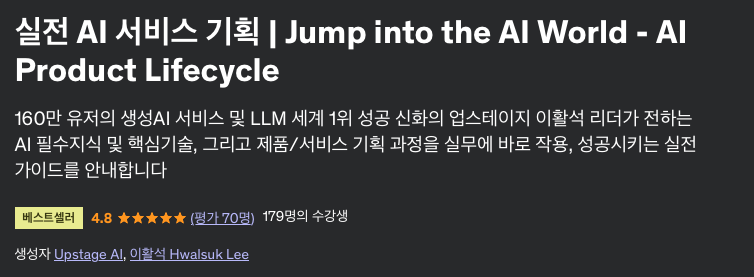 [후기 - Udemy] 실전 AI 서비스 기획 Jump into the AI World 본문