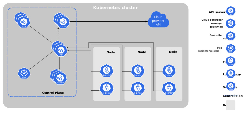 쿠버네티스 클러스터에서 컨트롤 플레인 컴포넌트들은 Worker 노트와 Pod를 관리하는 중요한 역할을 합니다.