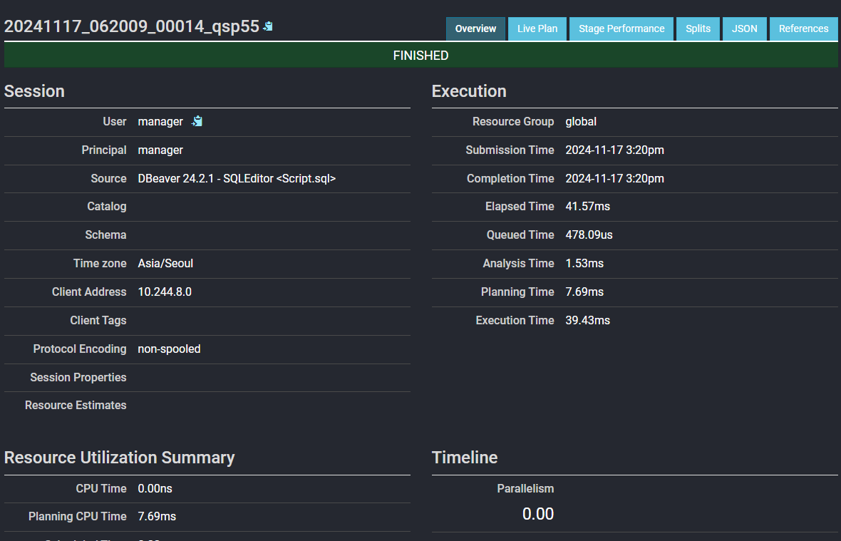 쿼리 결과를 Trino WEB UI에서 확인이 가능합니다.