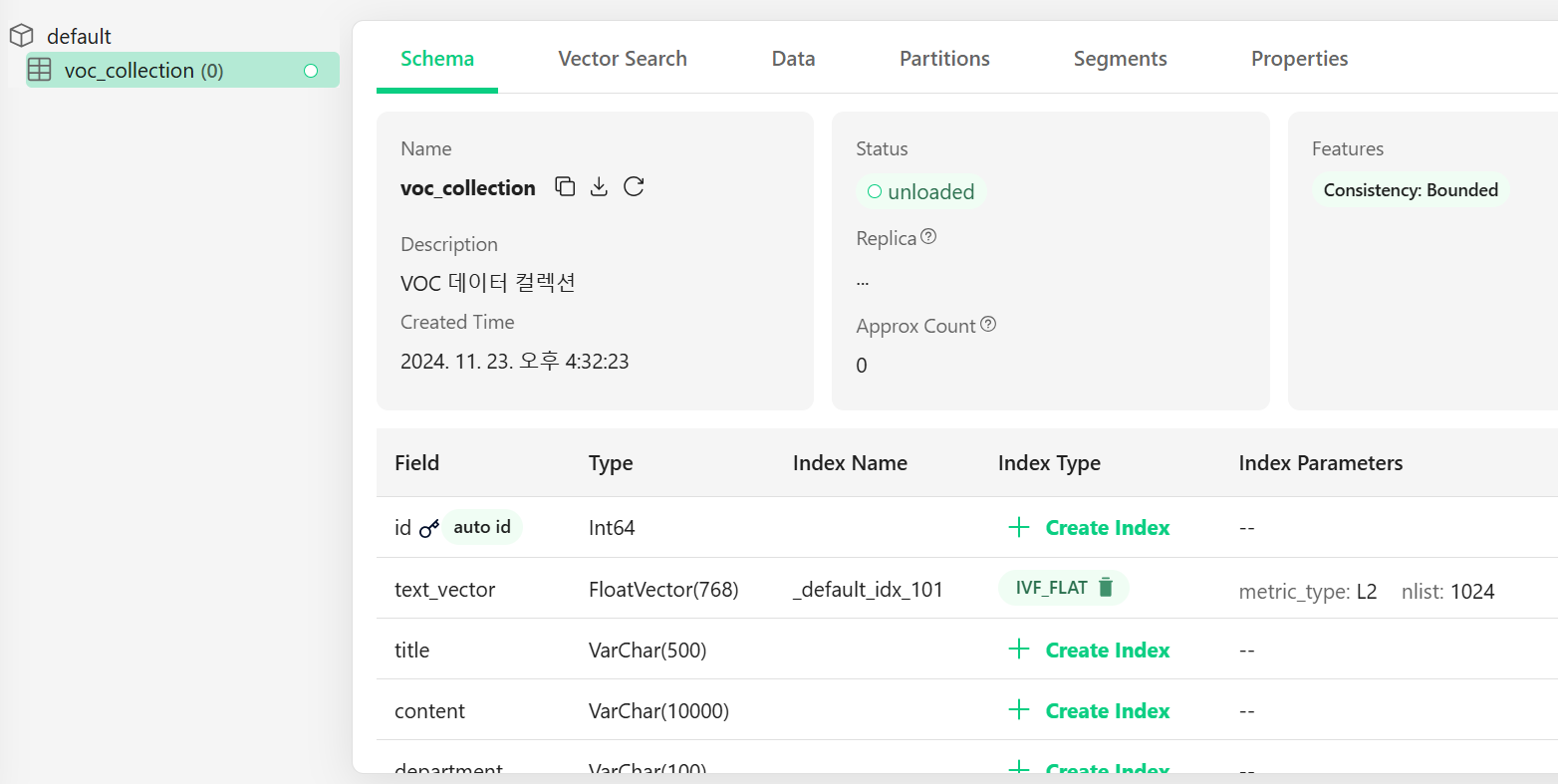 Milvus 컬렉션 구성