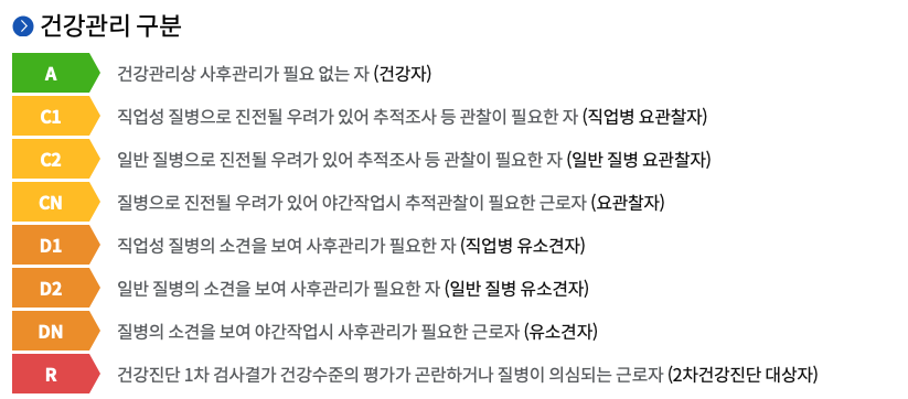 - 검진 결과 : 아래 코드표 참고