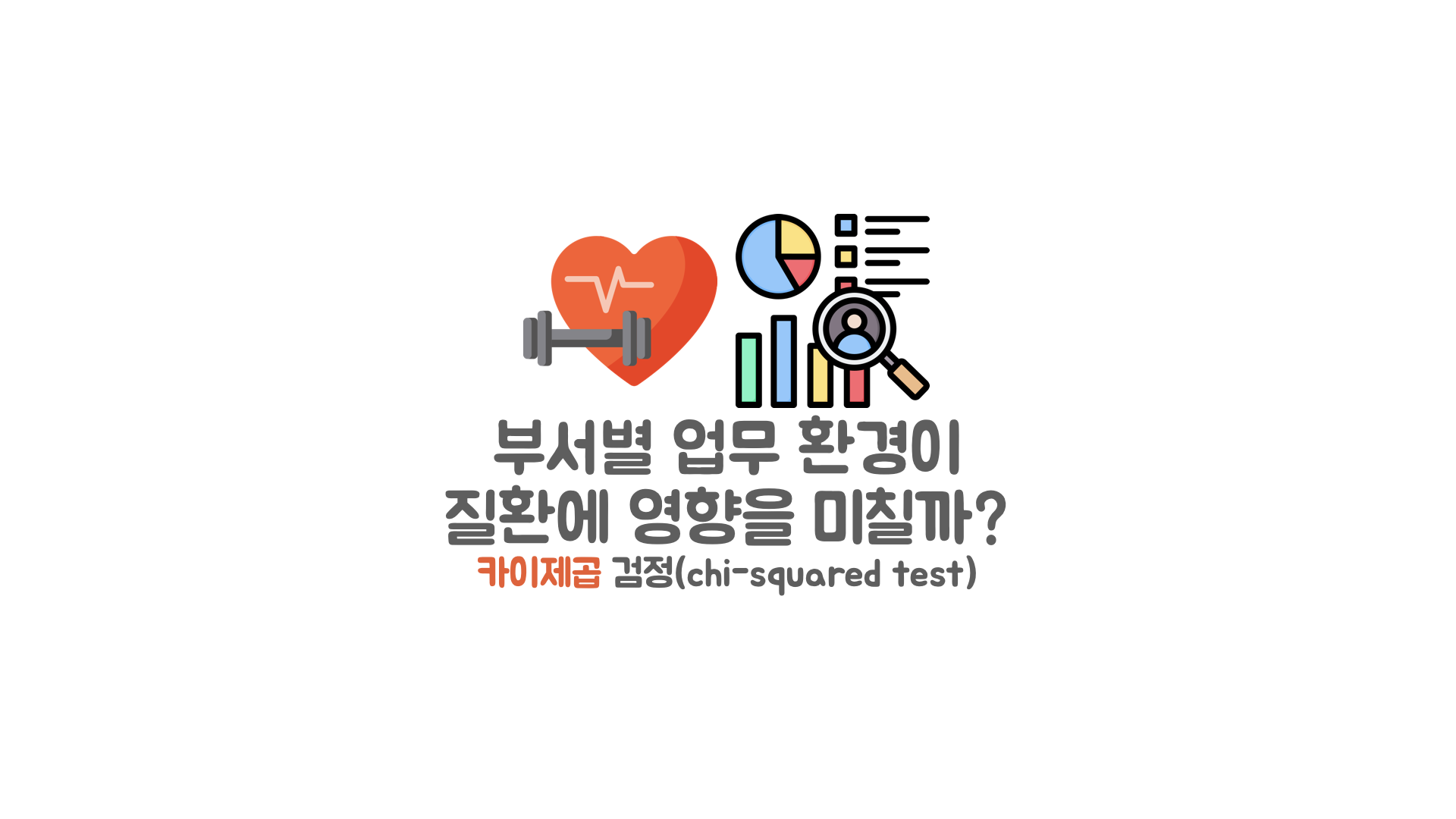 '부서별 업무 환경이 질환에 영향을 미칠까'라는 질문에 대한 답을 찾기 위해 카이제곱 검정을 하였습니다.