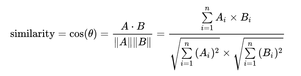 벡터로 바꾸면 코사인 유사도, 유클리드 거리 같은 수학 공식으로 계산할 수 있습니다.