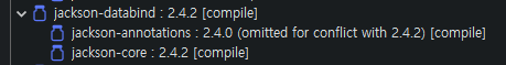 Jackson-databind Library는 jackson-core, jackson-annotaion Libarary 의존성을 포함합니다.