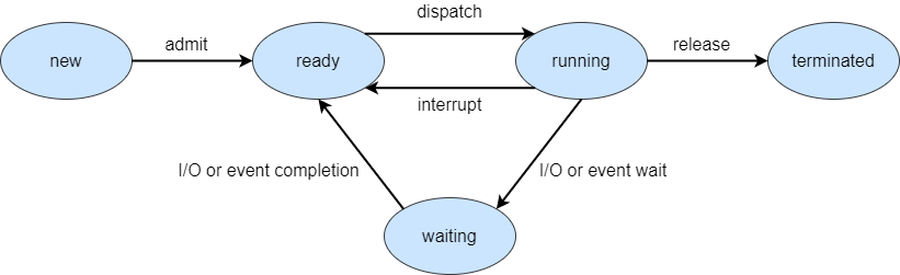 - Waiting -> CPU 사용을 다른 Process가 하면서 대기하고 있는 상태