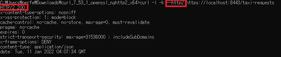 HTTP/2.0은 지원하지 않고, HTTP/1.1만 통신하는 것을 확인할 수 있다.