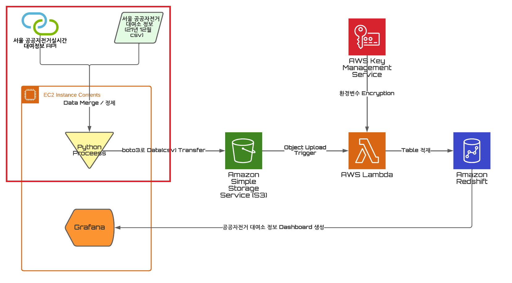 서울 따릉이 대여소 Data를 AWS Service와 Grafana를 이용하여 Dashboard까지 구성해보았다.