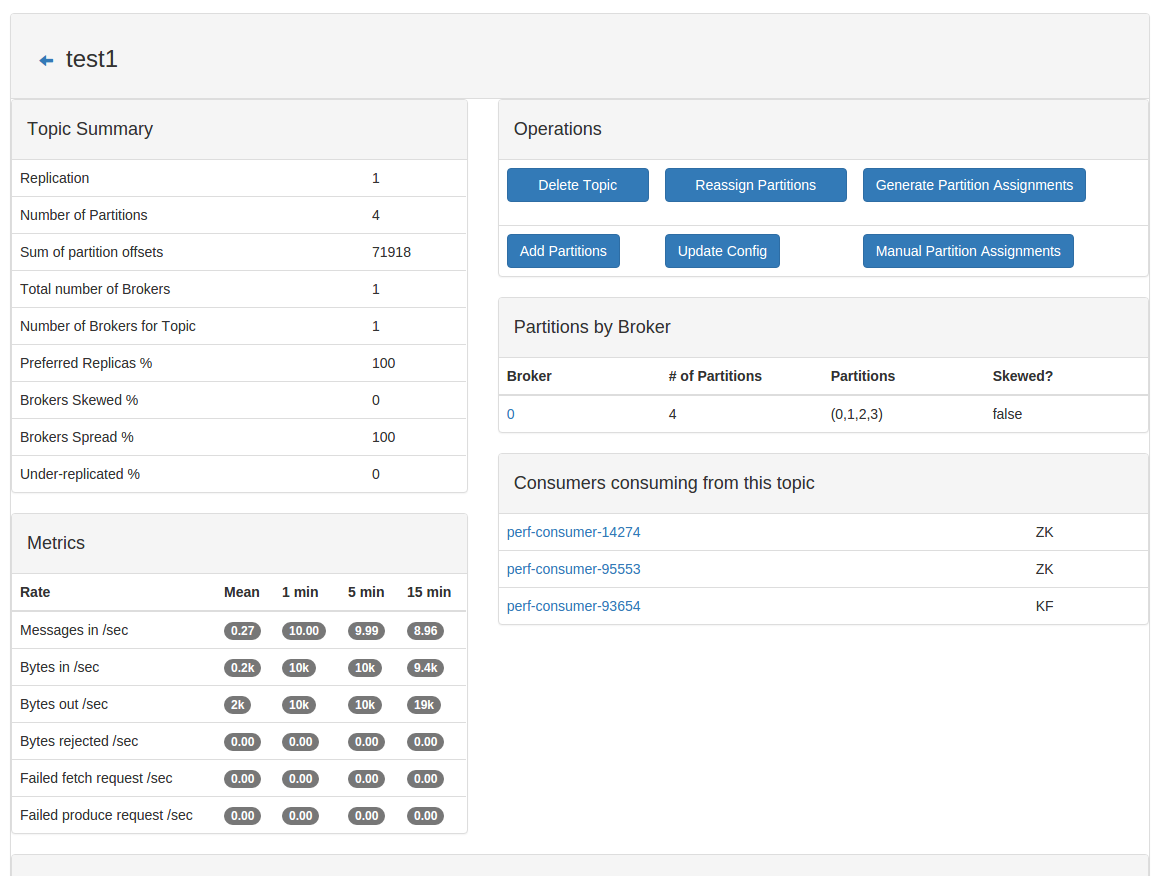 - Cluster 상태 확인 - Broker, Topic, Consumer, offset, replica, partition