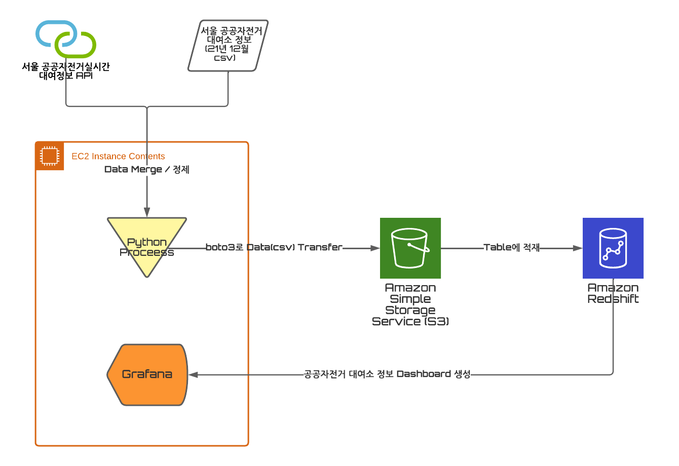 해당 테이블 데이터를 기반으로 EC2에 기동 중인 Grafana에서 Dashboard를 구성한다.